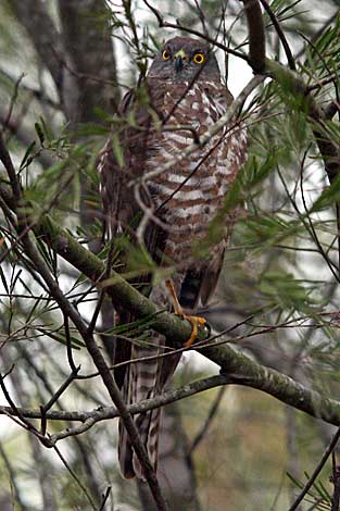 This Brown Goshawk landed on the verandah rail, then to and fro'd a few times between it