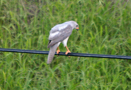 A couple of shaky shots from indoors of a Grey Goshawk scouting from a cross-creek cable